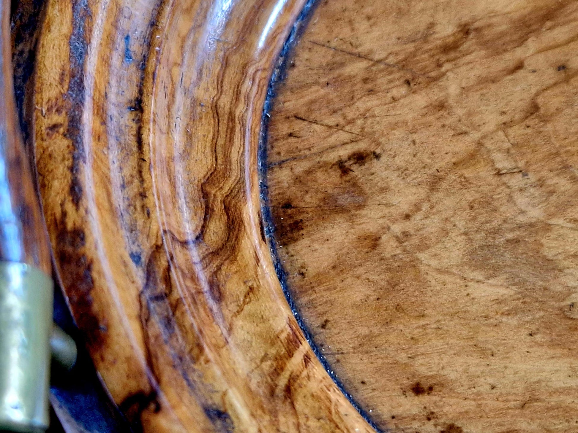 french antique walnut tray with brass capped handles.