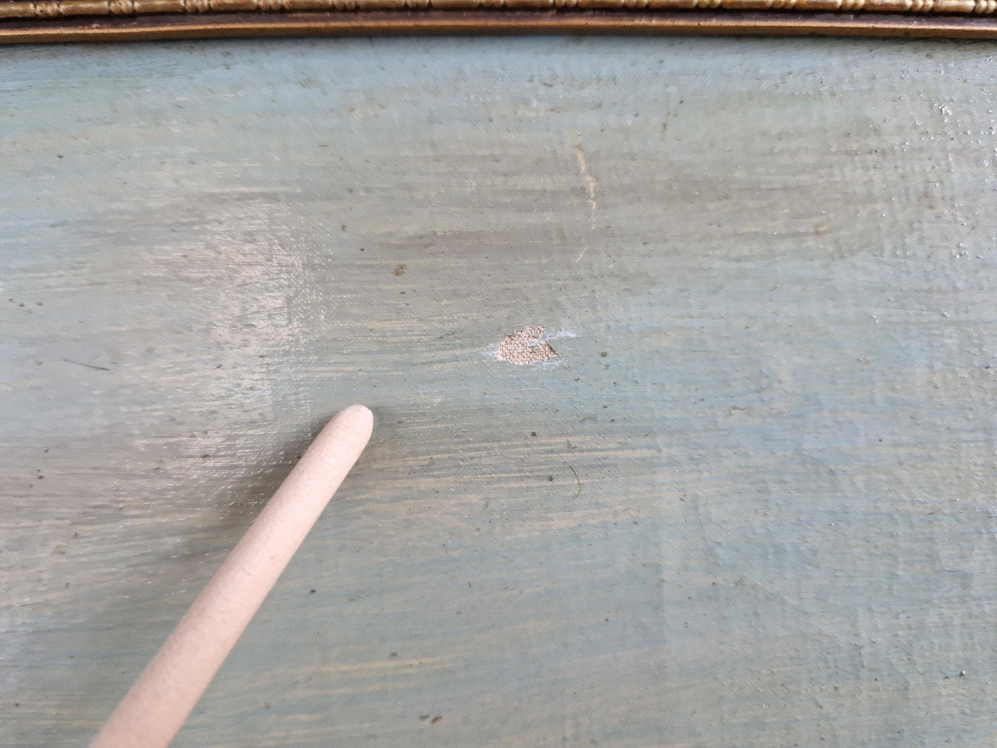 The overall condition is good it does have one very small area of paint loss towards the top of the painting which I have pointed out in one of the photos.