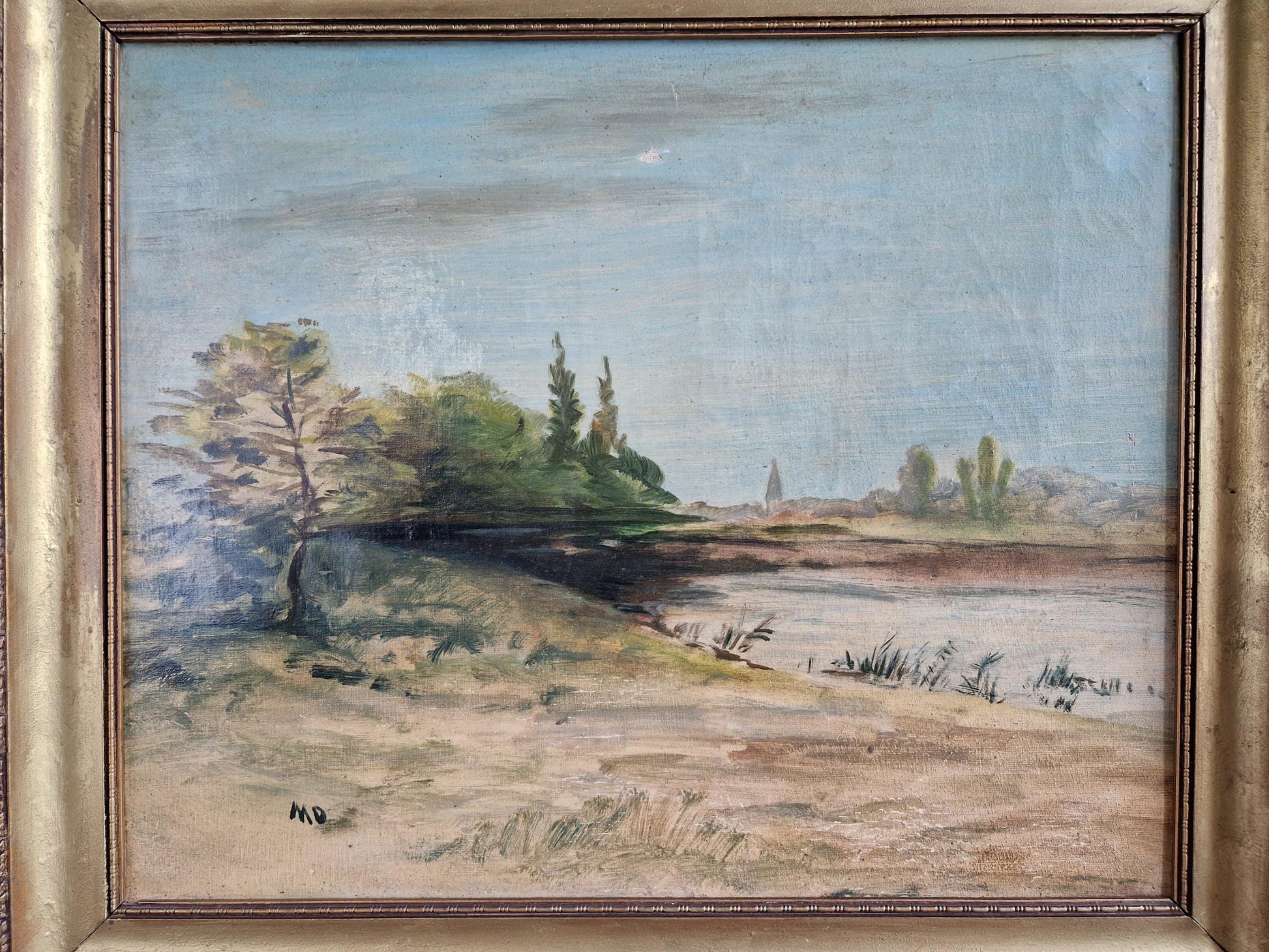 Here we have a splendid antique oil on canvas showing a lakeside. There is a real quality feel to the painting and on the back there is some writing on the back of the canvas saying that it is a fine canvas. The writing and the numbers help to date the painting to the early twentieth century or possibly late nineteenth.