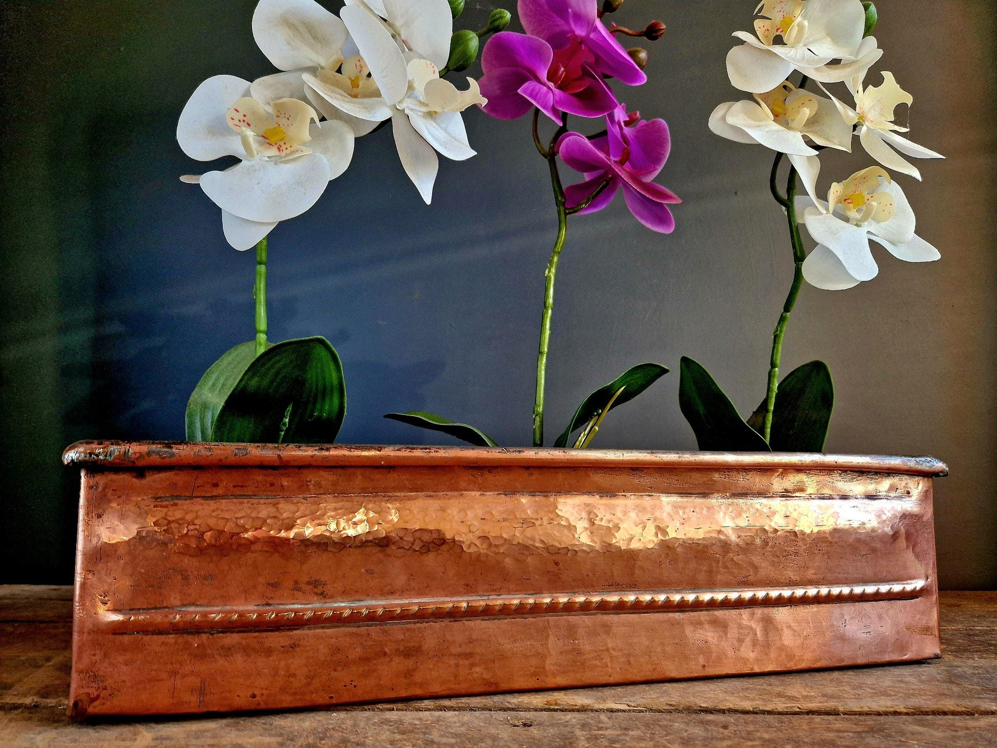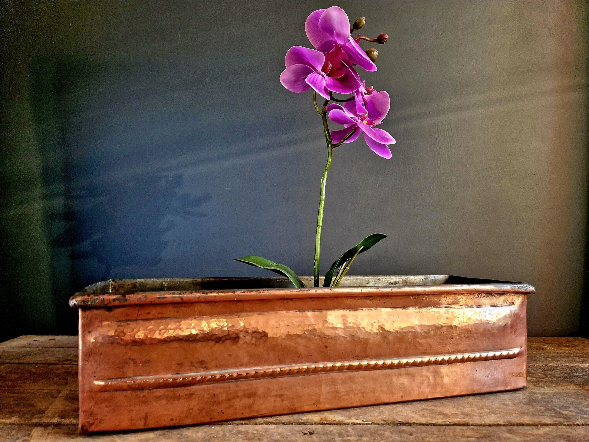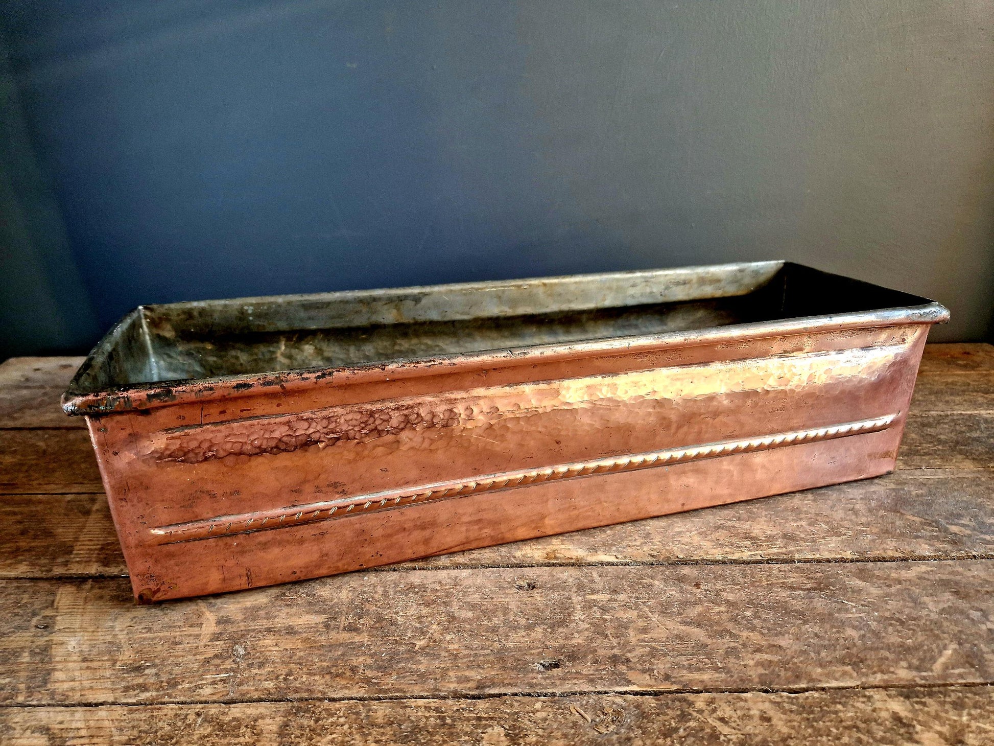 French antique copper planter in a rectangular form.