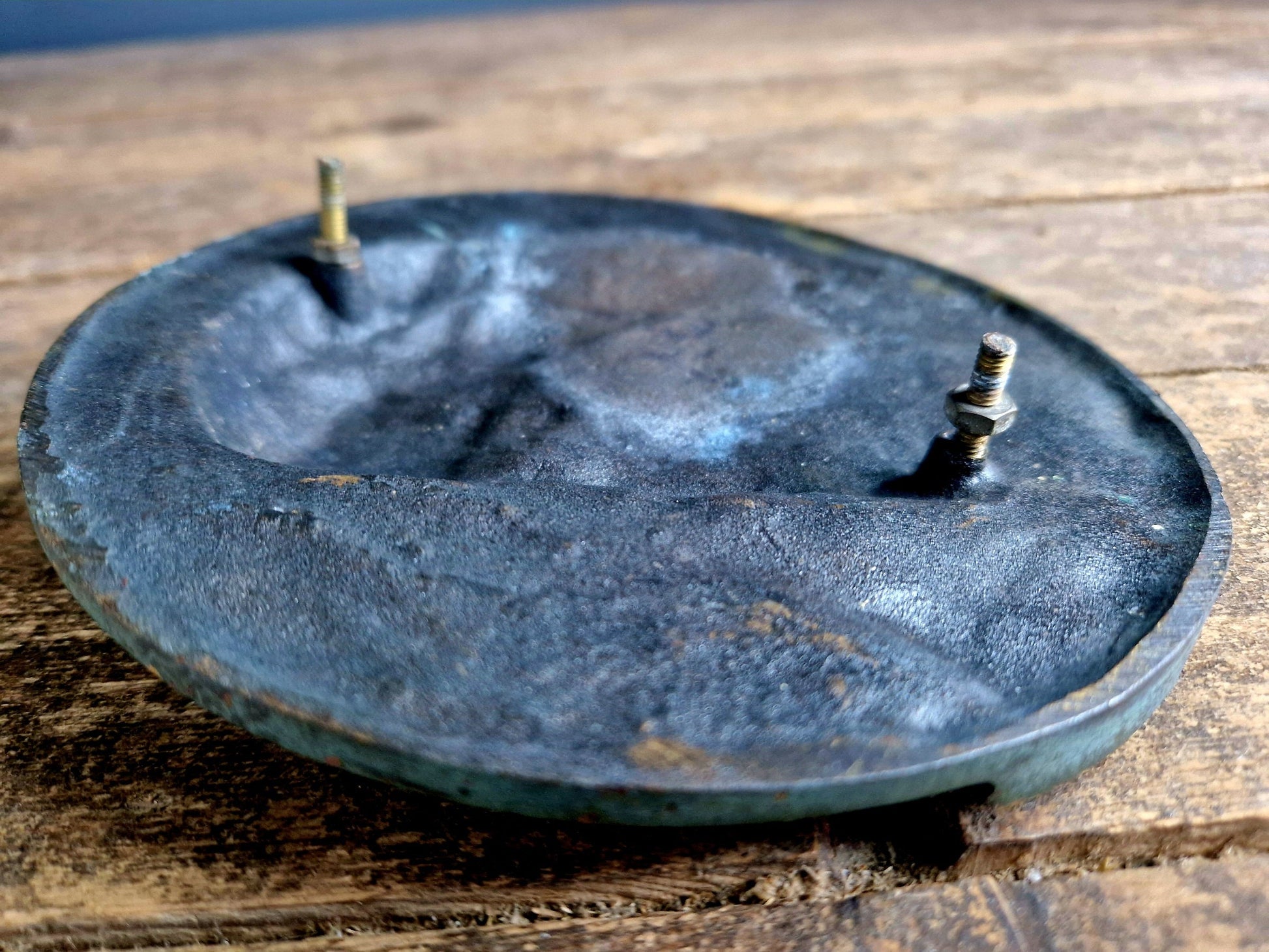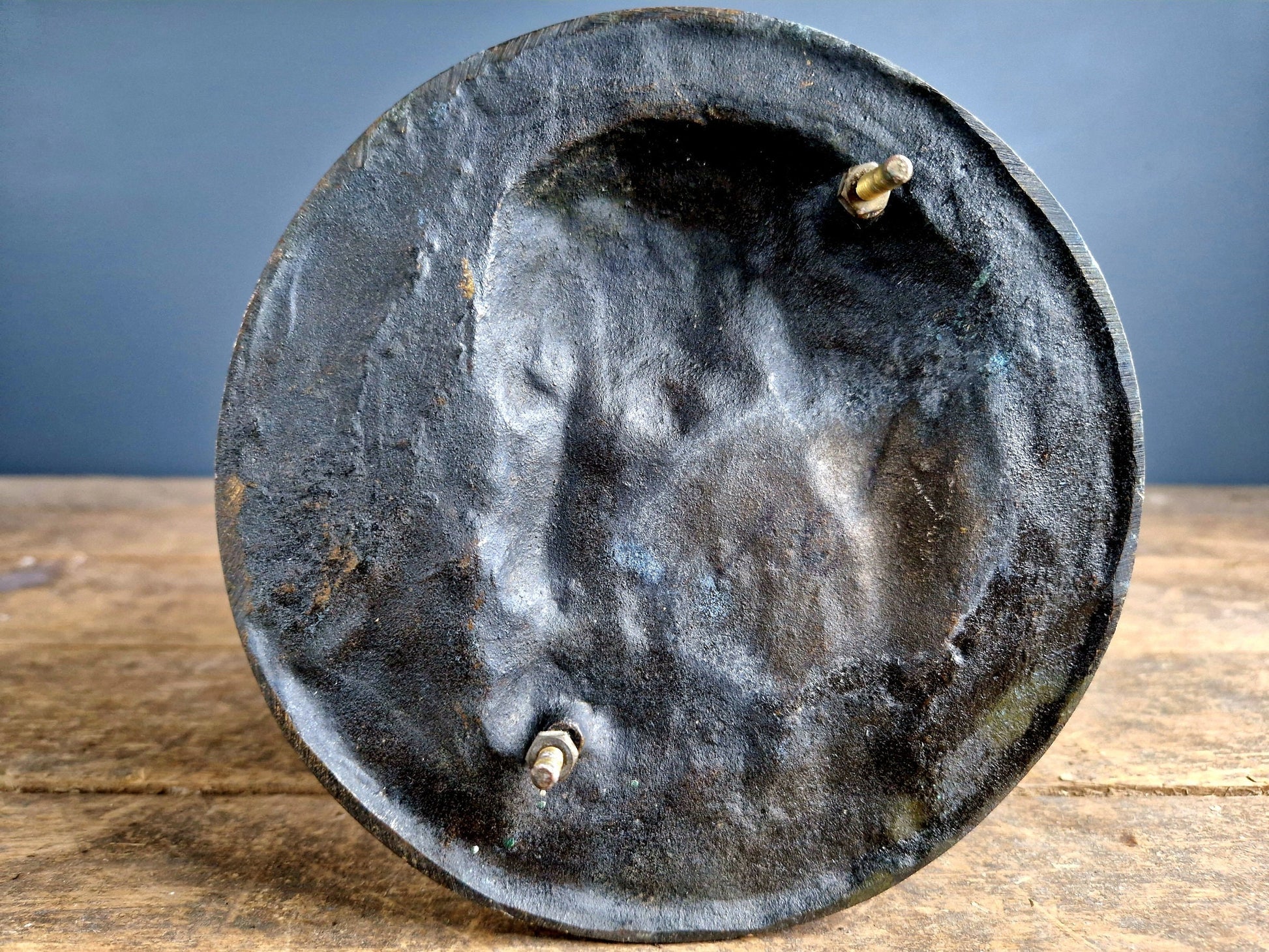 I have not attempted to polish the bronze, apart from giving the plaque a wash I have left it in its found condition. It could of course be polished up to a high shine if you preferred. There are two bolts at the back which were used to attach the plaque.