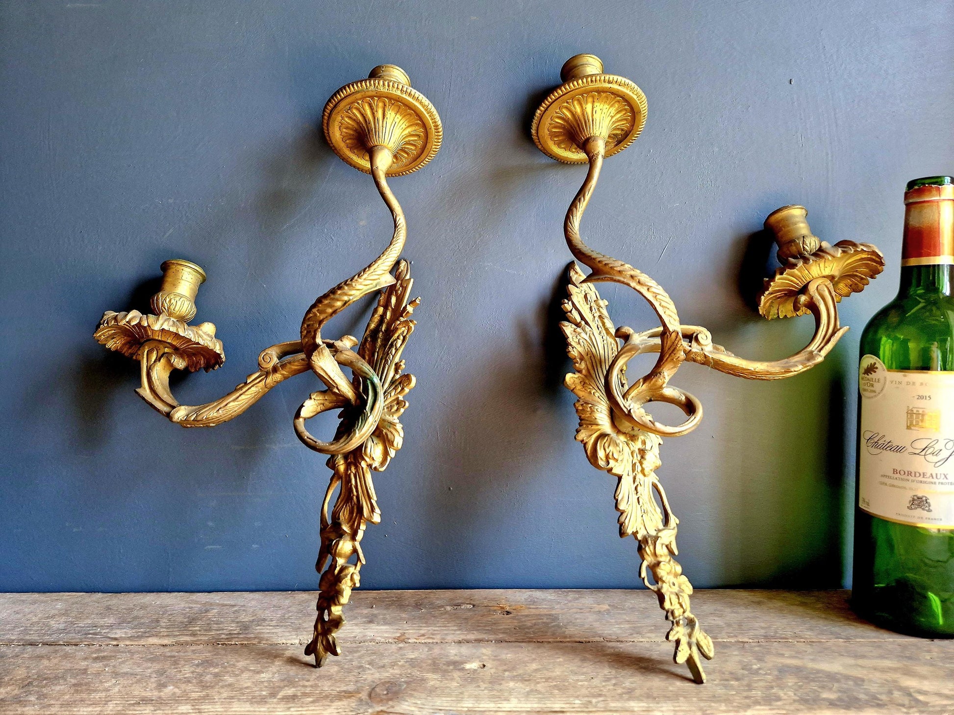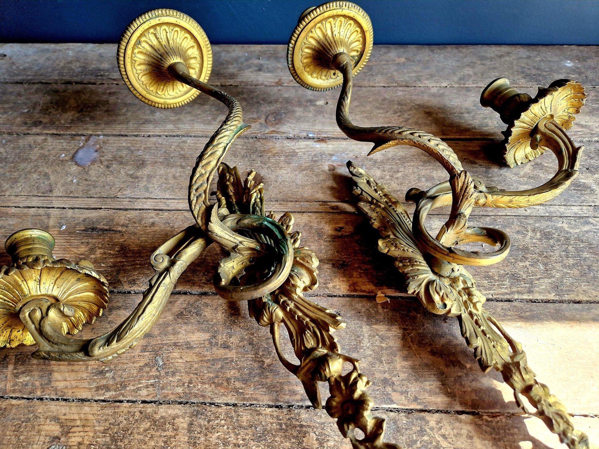 These sconces are formed in the eighteenth century style and have lovely decoration throughout. we believe they probably date to the early twentieth century when there was a revival in the eighteenth century style.