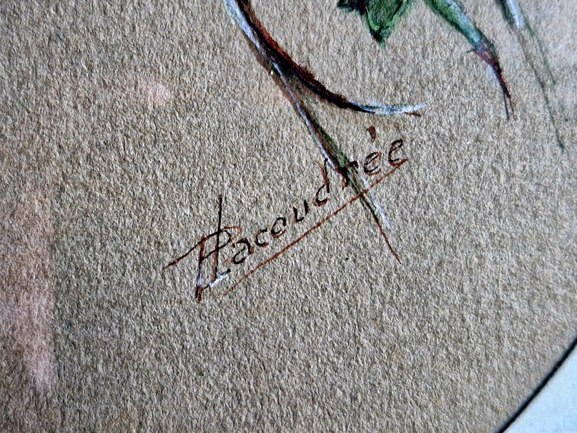 This splendid little piece has been signed in the bottom right hand corner with a signature which looks like Pacoudrée or Lacoudrée.