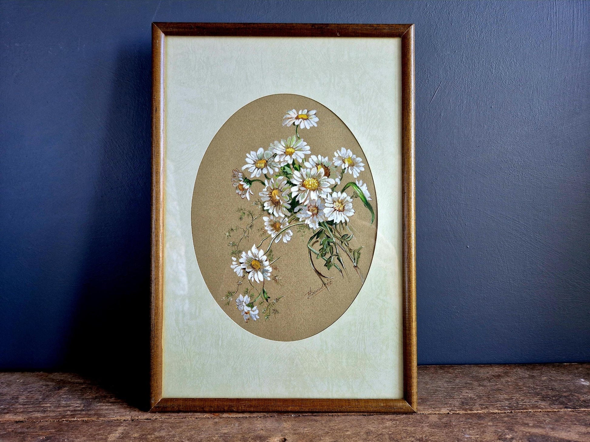 A lovely colourful little still life watercolour painting of a floral display in a vase.