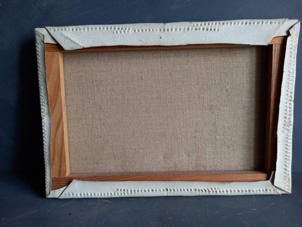 Here we have a very charming little picture which shows a pond or river in a snowy landscape. There is one issue with this painting which I have pointed out in one of the photos. Towards the top edge there is a small roundish mark which looks almost like a little bit of varnish. Because of this mark we have priced the painting accordingly. I would think the painting dates to the second half of the twentieth century.