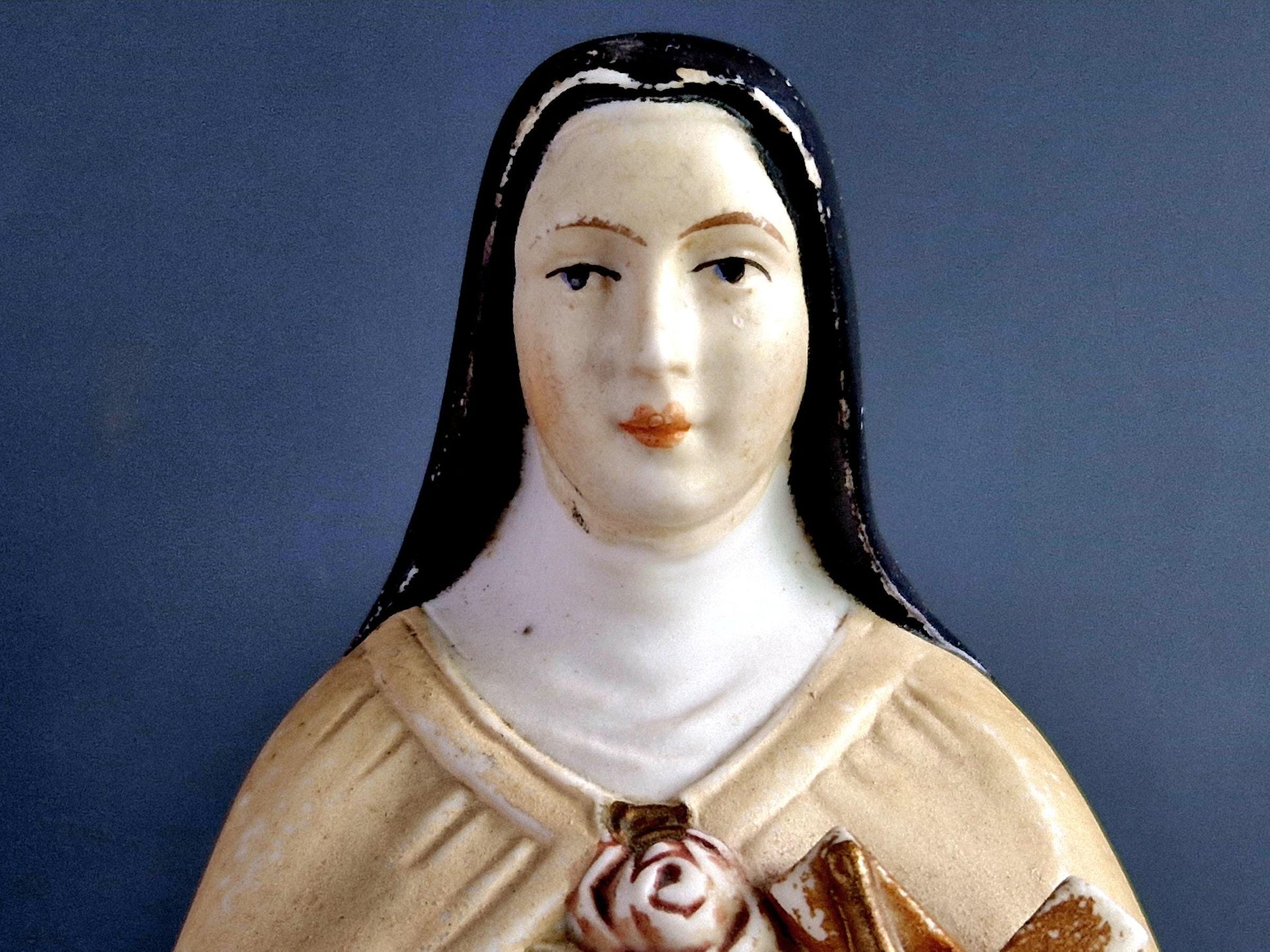 Here we have a lovely porcelain statue depicting Saint Therese of Lisieux.