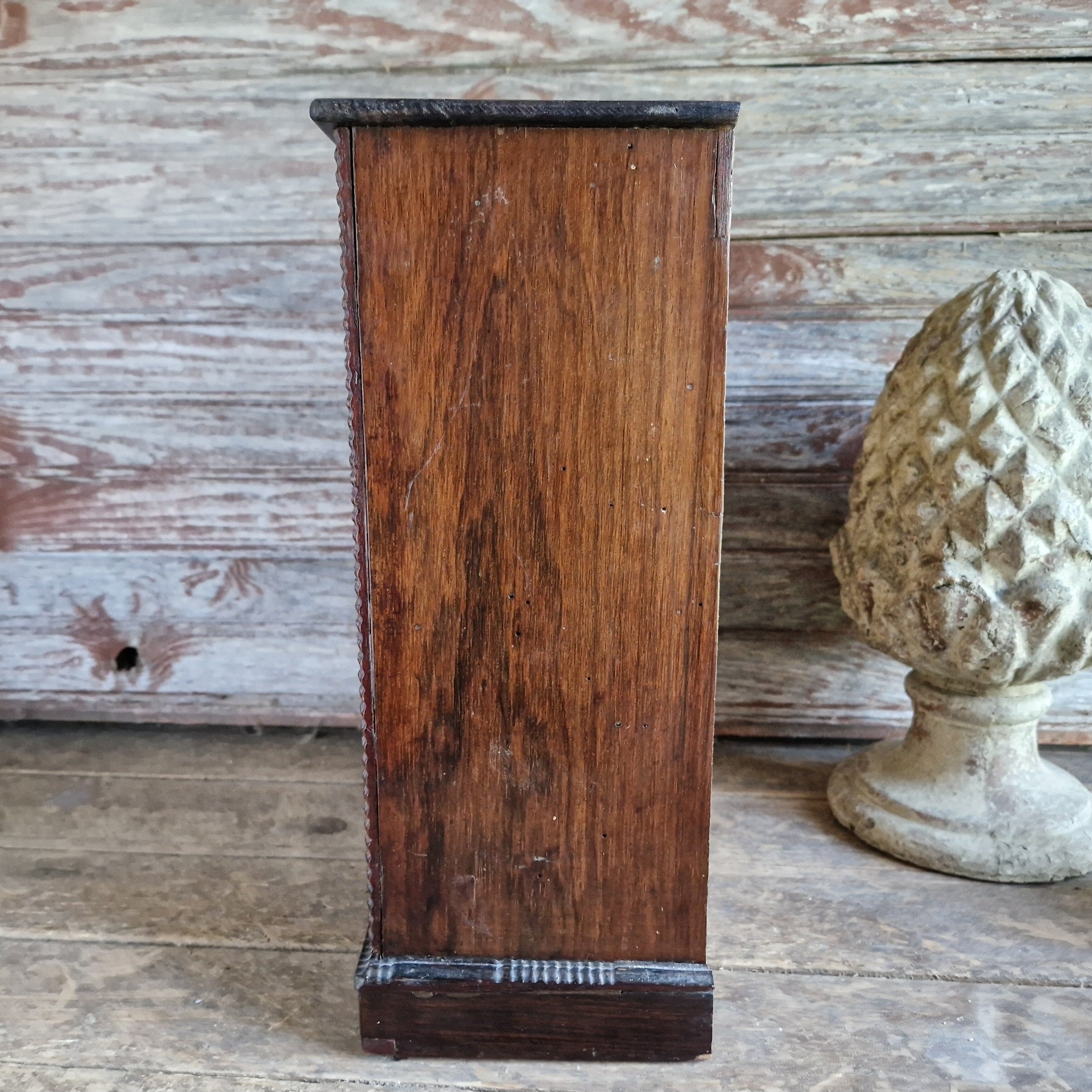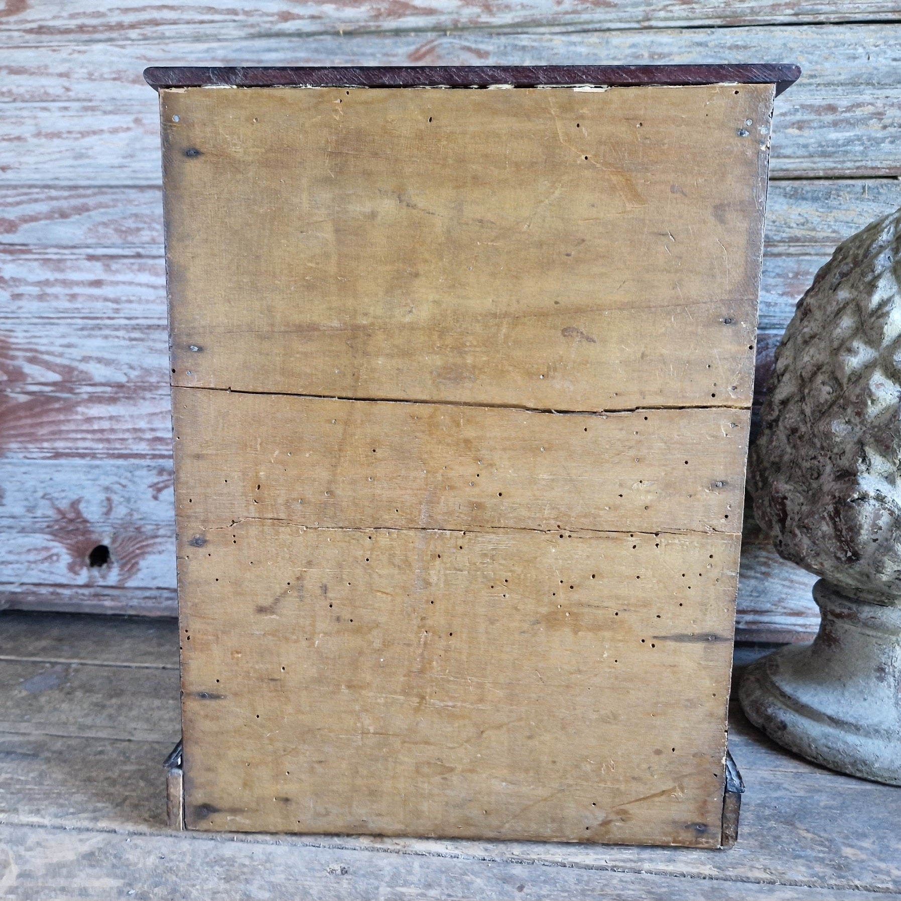 Condition: There is the usual wear and tear that you find on old pieces like this. The bottom drawer is slightly loose in its housing, you can probably see in some of the photos where there is a little bit of gapping on the lowest drawer. The backboard showed some signs of woodworm exit holes but it has been treated so there are no live woodworm.